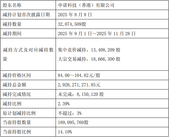中国经济网北京12月1日讯 恒立液压(601100.SH)11月28日晚间发布关于持股5%以上股东减持股份结果公告。2025年9月1日至2025年11月28日,申诺科技(香港)有限公司减持32,074,509股,减持价格区间为元/股84.00至104.82元/股,减持总金额2,926,271,271.85元。