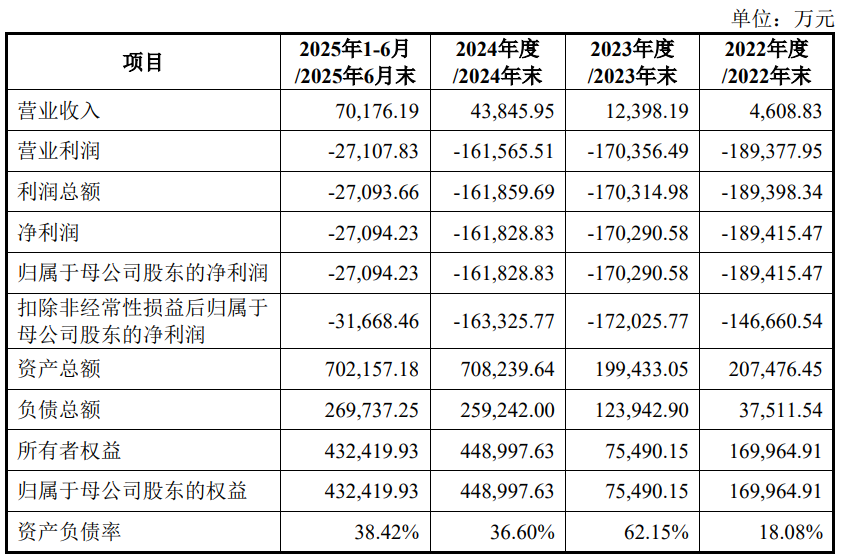 2022年至2024年,摩尔线程营业收入分别为4,608.83万元、12,398.19万元、43,845.95万元;净利润/归属于母公司股东的净利润分别为-189,415.47万元、-170,290.58万元、-161,828.83万元;扣除非经常性损益后归属于母公司股东的净利润分别为-146,660.54万元、-172,025.77万元、-163,325.77万元。