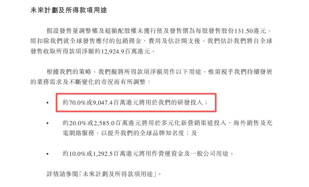 根据招股书披露,赛力斯此次IPO募资净额高达140.16亿港元,其中70%将用于研发投入。