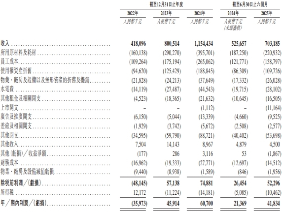 遇见小面从2022年的人民币36.0百万元的亏损扭亏为盈至2023年、2024年及截至2024年及2025年6月30日止六个月的人民币45.9百万元、人民币60.7百万元、人民币21.4百万元及人民币41.8百万元的利润。