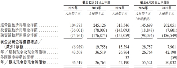 于2022年、2023年、2024年及截至2024年及2025年6月30日止六个月,遇见小面录得的经营活动所得现金净额分别为人民币104.8百万元、人民币245.1百万元、人民币313.5百万元、人民币145.7百万元及人民币202.1百万元。