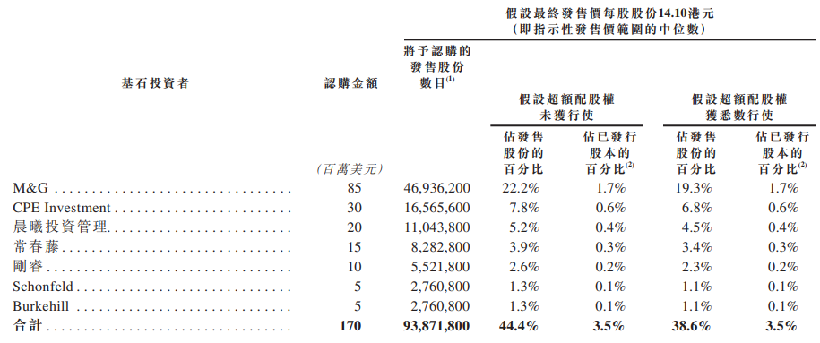京东工业的基石投资者包括M&G、CPE Investment、晨曦投资管理、常春藤、刚睿、Schonfeld、Burkehill。