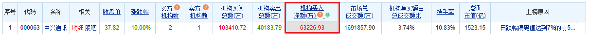 龙虎榜数据显示,中兴通讯买入金额最大的前五名中,有2家机构专用席位;卖出金额最大的前五名中,有1家机构专用席位。经统计,中兴通讯的机构席位今日净买入金额为63226.93万元。