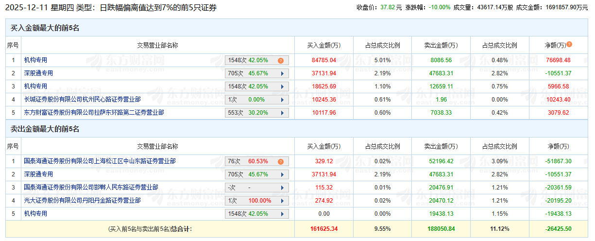 中国经济网北京12月11日讯 中兴通讯(000063.SZ)今日跌停,收报37.82元,跌幅10.00%。