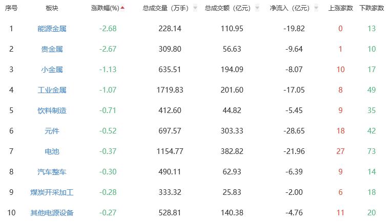 板块方面,造纸、军工电子、军工装备、电机等涨幅居前,能源金属、贵金属、小金属、工业金属等跌幅居前。