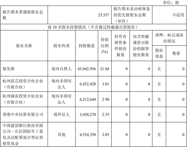 臻镭科技年报显示,臻镭科技董事长郁发新为控股股东及实际控制人。郁发新、杭州晨芯投资合伙企业(有限合伙)、杭州臻雷投资合伙企业(有限合伙)及杭州睿磊投资合伙企业(有限合伙)为一致行动人。