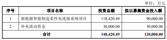 中国经济网北京1月6日讯 壹连科技(301631.SZ)昨晚披露的向不特定对象发行可转换公司债券预案显示,本次向不特定对象发行可转换公司债券募集资金总额预计不超过120,000.00万元(含本数),扣除发行费用后的募集资金净额拟投资于以下项目:新能源智能制造柔性电连接系统项目和补充流动资金。
