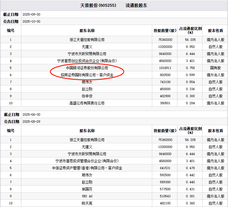 2025年第三季度,中国银河证券股份有限公司、招商证券国际有限公司-客户资金成为新晋股东,分别持股1016911股、802500股,分别占流通股比例0.758%、0.599%。