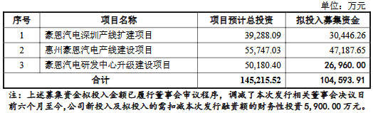 豪恩汽电于2026年1月9日披露《2025年度向特定对象发行股票募集说明书(申报稿)》。本次发行的募集资金总额不超过104,593.91万元(含本数),扣除发行费用后的募集资金净额将全部用于以下项目:豪恩汽电深圳产线扩建项目、惠州豪恩汽电产线建设项目、豪恩汽电研发中心升级建设项目。