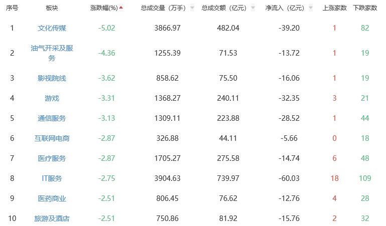 板块方面,电网设备、半导体、工程机械等涨幅居前,文化传媒、油气开采及服务、影视院线等跌幅居前。