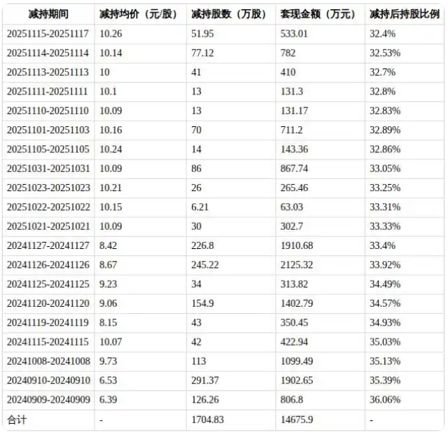 据新浪财经信息,数据显示,虢晓彬最初持股1.57亿股,占总股本的36.36%。虢晓彬从2024年9月9日起,第一次减持德生科技股份,迄今为止,累计减持公司股票1704.83万股,累计套现约1.47亿元。