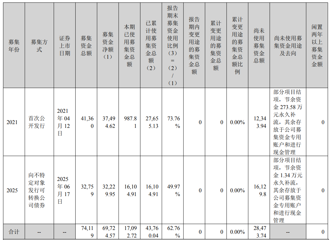 公司2025年向不特定对象发行可转换公司债券3,275,900张,每张面值为人民币100元,国金证券担任保荐机构(主承销商)。公司募集资金总额为人民币32,759.00万元,扣除发行费用人民币529.05万元(不含税)后,募集资金净额为人民币32,229.95万元。
