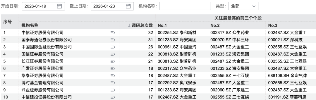 本周以来,超800机构调研A股上市公司。中信证券、国泰海通证券调研总次数均超30次。