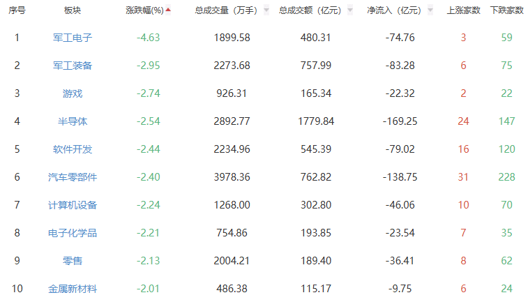 板块方面,贵金属、油气开采及服务、工业金属等板块涨幅居前,军工电子、军工装备、游戏等板块跌幅居前。