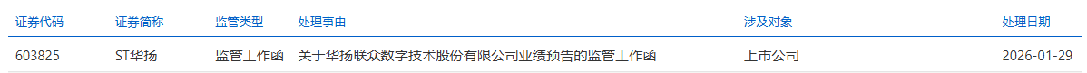 中国经济网北京2月2日讯 上交所官网1月29日发布了关于华扬联众数字技术股份有限公司业绩预告的监管工作函。