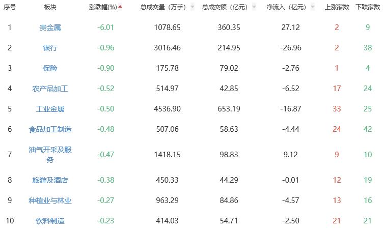 板块方面,光伏设备、军工装备、军工电子等涨幅居前,贵金属、银行、保险等跌幅居前。