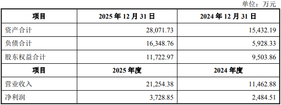 2024年、2025年,标的公司的营业收入分别为11,462.88万元、21,254.38万元;净利润分别为2,484.51万元、3,728.85万元。