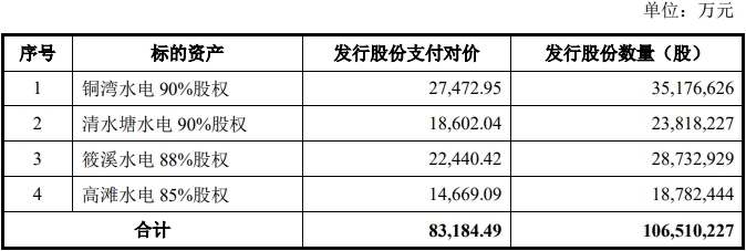 根据湖南发展于2026年1月30日披露的发行股份及支付现金购买资产并募集配套资金暨关联交易报告书(草案)(上会稿),上市公司拟以发行股份及支付现金的方式购买电投公司持有的铜湾水电90%股权、清水塘水电90%股权、筱溪水电88%股权及高滩水电85%股权。同时,上市公司拟向不超过35名符合条件的特定投资者发行股份募集配套资金