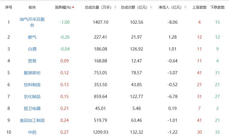 板块方面,影视院线、光伏设备、通信设备等涨幅居前,油气开采及服务、燃气、白酒下跌。