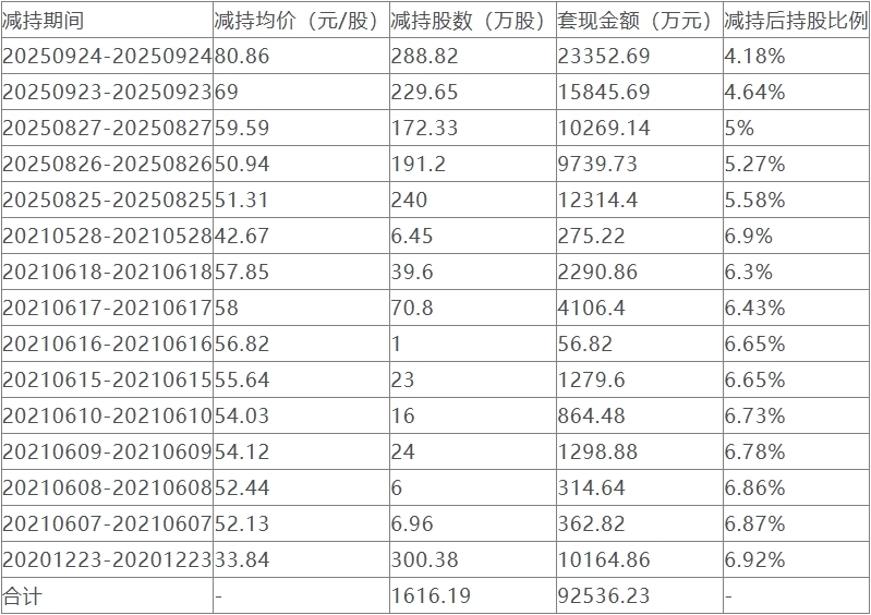 据新浪财经,数据显示,长川投资最初持股2470.95万股,占总股本的7.87%。长川投资从2020年12月23日起,第一次减持长川科技股份,截至2025年9月24日,累计减持公司股票1616.19万股,累计套现约9.25亿元。