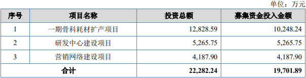 本次发行爱得科技募集资金总额为226,500,944.54元,扣除发行费用后,募集资金净额为196,986,713.41元。2026年1月29日,爱得科技发布的招股说明书显示,公司拟募集资金19,701.89万元,分别用于一期骨科耗材扩产项目、研发中心建设项目、营销网络建设项目。