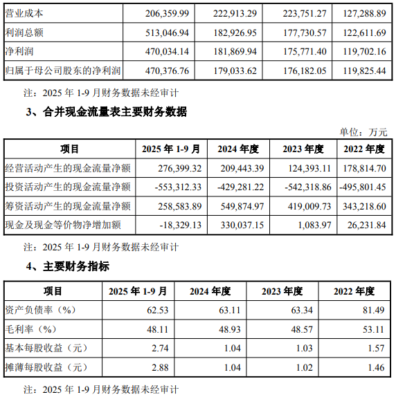 2022年度、2023年度、2024年度及2025年1-9月,润泽科技实现营业收入分别为271,474.07万元、435,078.83万元、436,482.95万元和397,717.62万元,归属于母公司所有者的净利润分别为119,825.44万元、176,182.05万元、179,033.62万元及470,376.76万元。