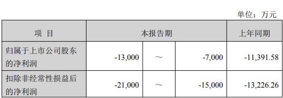 据公司2025年业绩预告,2025年,公司归属于上市公司股东的净利润预计为-13,000至-7,000万元,上年同期-11,391.58万元,扣除非经常性损益后的净利润预计为-21,000至-15,000万元,上年同期-13,226.26万元。