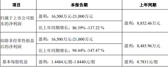 据公司2025年业绩预告,本报告期,公司归属于上市公司股东的净利润预计盈利16,500万元至21,000万元,比上年同期增长86.39%至137.22%;扣除非经常性损益后的净利润预计盈利16,500万元至21,000万元,比上年同期增长94.44%至147.47%。