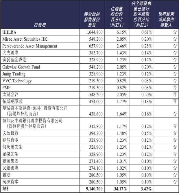 根据配发结果公告,兆威机电本次发行发售股份数目为26,748,300股H股,其中,香港公开发售的发售股份数目为2,674,900股H股,国际发售的发售股份数目为24,073,400股H股。