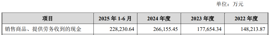 上述同期,公司销售商品、提供劳务收到的现金分别为148,213.87万元、177,654.34万元、266,155.45万元和228,230.64万元;经营活动产生的现金流量净额分别为34,672.88万元、45,039.73万元、106,952.95万元和82,406.54万元。