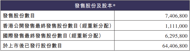 最终发售价及配发结果公告显示,铜师傅全球发售的发售股份数目为7,406,800股H股,其中,香港发售股份数目为1,111,000股H股(经重新分配),国际发售股份数目为6,295,800股H股(经重新分配)。