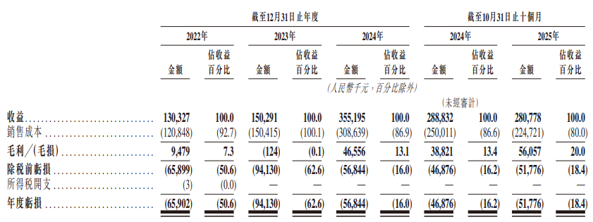 2022年、2023年、2024年和2025年1-10月,傅里叶半的营收分别为1.30亿元、1.50亿元、3.55亿元和2.81亿元,净亏损分别为6590.2万元、9413.0万元、5684.4万元和5177.6万元。