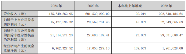 2019年至2024年,百邦科技归属于上市公司股东的净利润分别为-0.93亿元、-0.87亿元、0.07亿元、-0.33亿元、-0.29亿元、-0.15亿元。