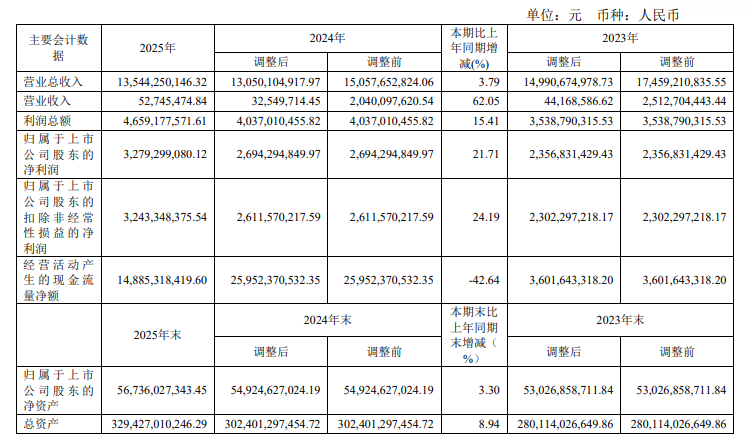 国投资本今日发布2025年年度报告。2025年公司实现营业总收入135.44亿元,同比增长3.79%;归属于上市公司股东的净利润32.79亿元,同比增长21.71%;归属于上市公司股东的扣除非经常性损益的净利润32.43亿元,同比增长24.19%。
