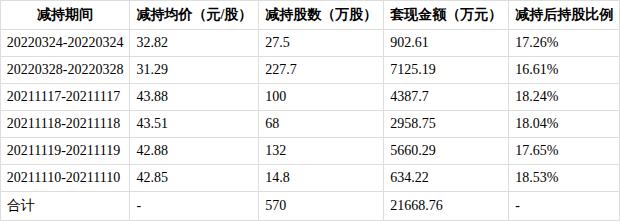 据新浪财经,新银国际最初持股6326.77万股,占总股本的18.57%。新银国际从2021年11月10日起,第一次减持晶瑞电材股份,截至此次减持前,累计减持公司股票570万股,累计套现约2.17亿元。