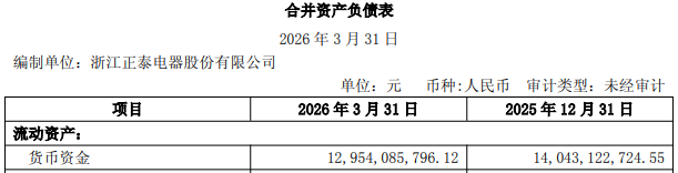 中国经济网北京4月16日讯 正泰电器(601877.SH)昨晚披露的2026年第一季度报告显示,公司首季实现营业收入213.03亿元,同比增长46.33%;归属于上市公司股东的净利润12.67亿元,同比增长8.92%;归属于上市公司股东的扣除非经常性损益的净利润12.10亿元,同比增长11.27%;经营活动产生的现金流量净额41.19亿元,同比增长70.40%。