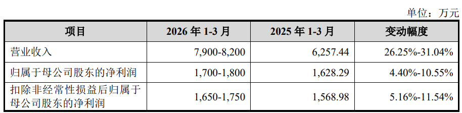 恒道科技预计2026年1-3月实现营业收入7,900万元至8,200万元,同比增长26.25%至31.04%;预计实现归属于母公司股东的净利润1,700万元至1,800万元,同比增长4.40%至10.55%;预计实现扣除非经常性损益后归属于母公司股东的净利润1,650万元至1,750万元,同比增长5.16%至11.54%。