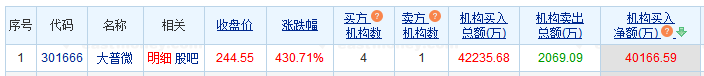 中国经济网北京4月16日讯 今日,大普微(301666.SZ)收报244.55元,涨幅430.71%。