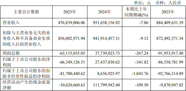中国经济网北京4月24日讯 震有科技(688418.SH)昨日晚间发布2025年年度报告。2025年,公司实现营业收入8.77亿元,同比减少7.86%;归属于上市公司股东的净利润-6634.91万元,同比减少341.82%;归属于上市公司股东的扣除非经常性损益的净利润-8170.04万元,同比减少1,043.76%;经营活动产生的现金流量净额-1062.07万元,同比减少109.50%。