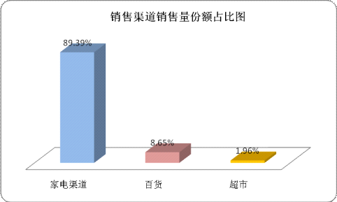 数据还显示出吸油烟机的销售模式与渠道趋势。销售模式方面,套餐销售是目前油烟机市场较有特色的销售方式。渠道趋势方面,尽管家电渠道仍是销售的主力军,拥有89.39%的零售量份额,但百货商场的零售量、零售额也同比分别上升了10.04%和13.00%。目前,百货和超市的零售量份额已分别达到8.65%和1.96%。未来的厨电渠道趋势,将以网络为主流。